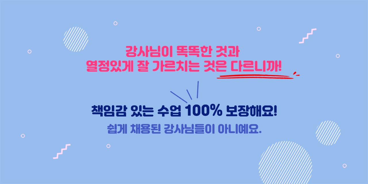 1. 강사 퀄리티! 엄격한 규정으로 채용하여 관리합니다.